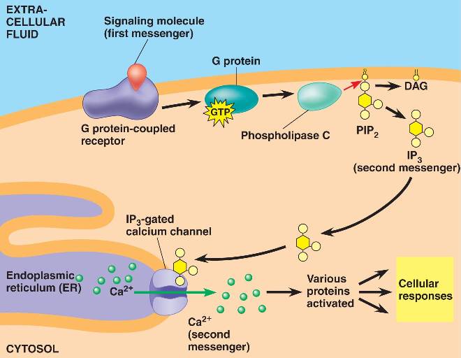 This is initiated by the binding of a signal molecule to a G-protein-linked receptor, or to a receptor tyrosine kinase.