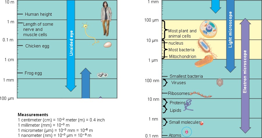 The average eukaryotic cell is about 100 μm (100 x 10-6 m. = 10-4 m.) long.