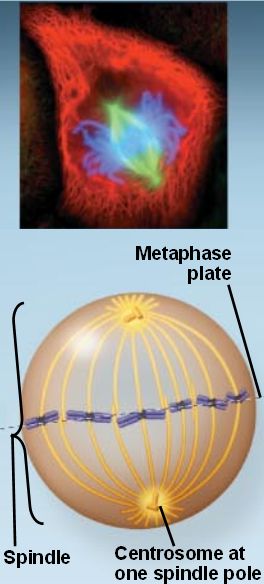 The chromosomes convene on the metaphase (equatorial) plate.