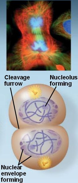 Nuclear envelopes and nucleoli reform.