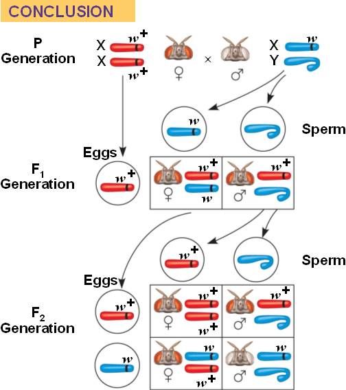 the F2 generation, the eye-color gene must be located on the X chromosome: