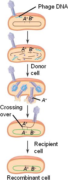 Phages occasionally carry random pieces of the host chromosome containing bacterial genes from one cell (the donor) to another (the recipient).
