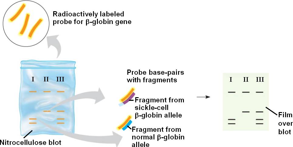 to the β-globulin gene, which base-pairs (hybridize) to the