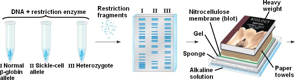 | Southern blotting can be used to compare restriction fragments of DNA. | ||||