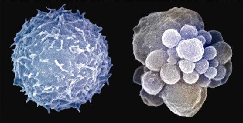 A white blood cell undergoes apoptosis (programmed cell death)