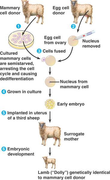 The nucleus of a differentiated mammary cell is transplanted to an enucleated egg cell from a female.