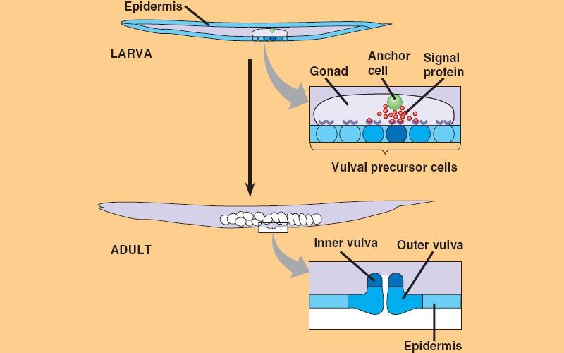 part of the vulva. Two other cells receive a weaker signal and are induced to form the outer vulva.
