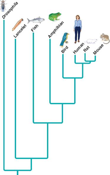 This phylogram was constructed by comparing homologous Sonic hedgehog homolog (SHH) genes involved in embryonic development; mutations in Drosophila cause embryos to be covered with small pointy projections,like a hedgehog.