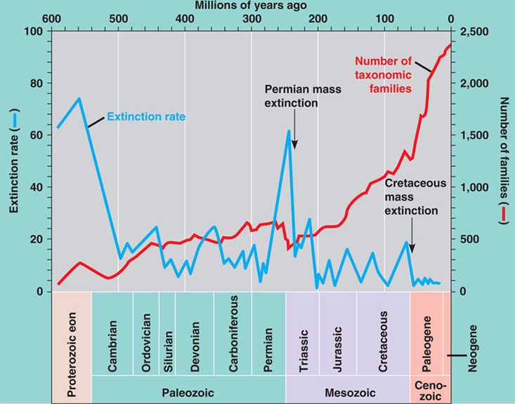 Diversity of life and periods of mass extinction