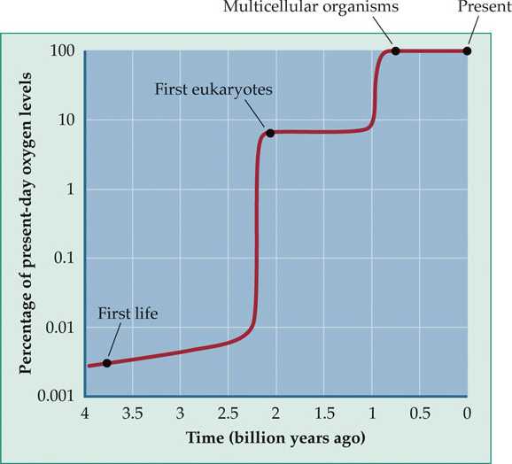 then into the atmosphere. The buildup of Oxygen allowed the evolution of bigger