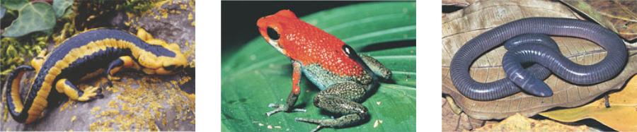 Order Urodela (salamanders) retain their tail as adults. Order Anura (frogs) lack a tail as adults. Order Apoda (caecilians) are legless, mainly burrowing amphibians.