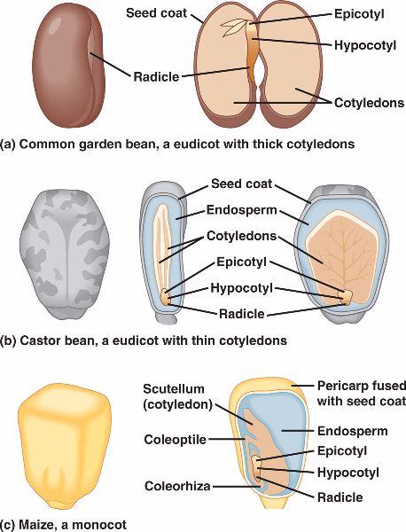 Monocots also have a coleoptile to protect the shoot, and a coleorhiza to protect the root.