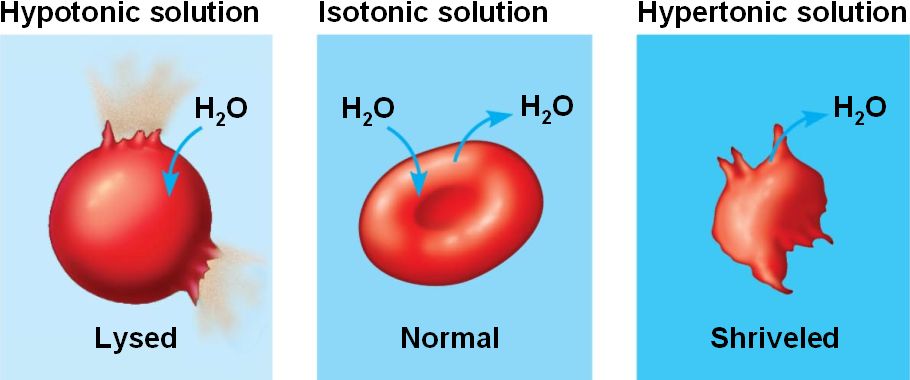 • Hypertonic, isotonic, hypotonic environments: